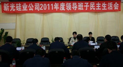 按照川投集團黨委文件要求,新光硅業(yè)公司于2011年10月27日在公司2號辦公樓大會議室召開了2011年度領(lǐng)導(dǎo)班子民主生活會。川投集團總會計師曹筱萍、黨群工作部副主任王軍到會指導(dǎo)。新光公司領(lǐng)導(dǎo)班子成員參加會議,技術(shù)專家、各部門負(fù)責(zé)人、黨員代表列席會議。會議由黨委書記、總經(jīng)理陳長江主持。