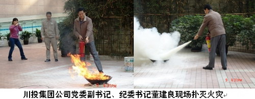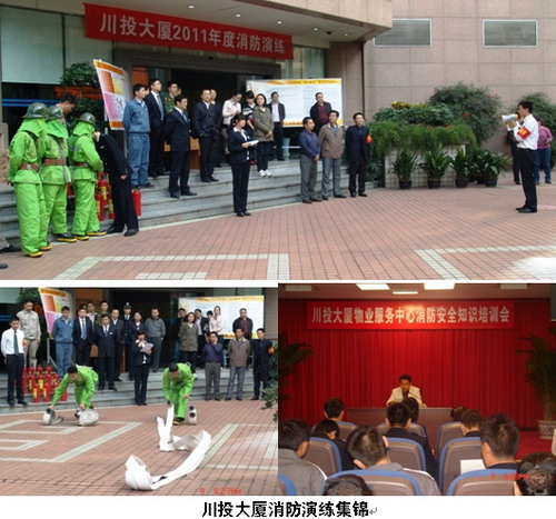 川投大廈共有16層地面辦公樓層,屬小高層建筑,是青羊區(qū)消防重點單位之一。為使川投大廈業(yè)主、客戶熟悉大廈消防通道和正確使用滅火器,佳友物業(yè)公司川投物業(yè)服務中心會同集團公司后勤管理中心組織了業(yè)主、客戶共同參與的消防演練。本次消防演練,得到了集團公司領導的大力支持,得到了集團公司安委會、后勤中心和安辦等相關部門的支持和配合。演練總指揮由佳友物業(yè)公司安委會主任、副總經(jīng)理王賓同志擔任,集團公司黨委副書記、紀委書記董建良、總經(jīng)理助理、辦公室主任楊強、各部門領導及管理人員、客戶單位代表、后勤管理中心及佳友物業(yè)公司本部、物業(yè)服務中心全體員工參加了演練。