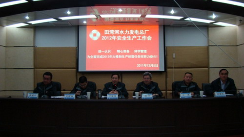 12月5日,田灣河公司在電站現(xiàn)場(chǎng)208會(huì)議室召開電廠2012年度安全生產(chǎn)工作會(huì),公司副總經(jīng)理、電廠廠長(zhǎng)盧建奎,電廠常務(wù)副廠長(zhǎng)熊宇,副廠長(zhǎng)、總工程師吳建斌,副廠長(zhǎng)王勇出席了會(huì)議,會(huì)議總結(jié)了2011年度電站安全生產(chǎn)工作,對(duì)2012年度安全生產(chǎn)及基礎(chǔ)管理工作提出了更高的要求。
