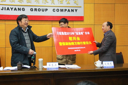1月9日,川投集團總經(jīng)濟師薛東兵一行代表川投集團到嘉陽集團開展“送溫暖”活動,為公司送來春節(jié)慰問金一百七十四萬四千一百元,在寒冷的嚴(yán)冬讓嘉陽職工如沐春風(fēng),暖意濃濃。