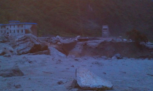 7月13日凌晨4點,田灣河流域持續(xù)強降雨,引發(fā)百年不遇的特大山洪。在公司電站現(xiàn)場值班的副總經(jīng)理盧建奎立即組織成立應(yīng)急指揮小組,啟動公司防洪度汛應(yīng)急預(yù)案,拉響營地警報器,組織員工迅撤離到指定避難場所避險待命;同時,三站及仁宗海水庫大壩、“引田入環(huán)”首部各方實時信息也迅速匯聚到指揮小組。7時30分,公司黨委書記、總經(jīng)理孫志祥在成都遠(yuǎn)控中心通過工業(yè)電視系統(tǒng)查看了現(xiàn)場受災(zāi)情況,他下令運行人員嚴(yán)格控制仁宗海水庫的水位不超過2928.5米,并立即將有關(guān)情況匯報給集團(tuán)公司和川投能源領(lǐng)導(dǎo)。下午15時,孫志祥帶領(lǐng)副總經(jīng)理唐劍虹抵達(dá)電站現(xiàn)場,立即投入到抗洪搶險工作中。目前已確認(rèn)公司營地及各站點值守人員全部安全,干線公路約1500m沖毀,大發(fā)水電站引水明渠沖毀,220kV仁田線停電,35kV唐草線、10kV金紅線多處倒塔斷桿,田灣河金窩電站以下段河道多處改道,河床淤積抬高,公司營地河堤、紅房子等建筑物受損嚴(yán)重,受交通等因素限制,具體受災(zāi)情況核實和各項搶險工作正在有序開展中。(王洪英 徐瀚)