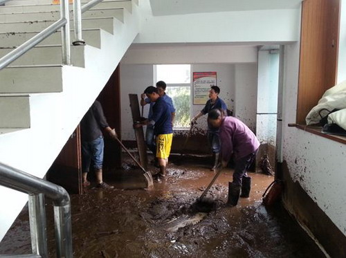 與此同時(shí),受張昊委托,總經(jīng)理助理熊宇在公司營(yíng)地召集技術(shù)與安全部、發(fā)電部、設(shè)備檢修與維護(hù)部、水工與水情部等相關(guān)部門(mén)和物業(yè)管理單位召開(kāi)了“7.09山洪泥石流”抗洪搶險(xiǎn)第一次會(huì)議。進(jìn)一步明確了抗洪搶險(xiǎn)期間的組織領(lǐng)導(dǎo)、協(xié)調(diào)機(jī)制、人員集中地點(diǎn)、搶險(xiǎn)碰頭會(huì)議制度等內(nèi)容。重點(diǎn)強(qiáng)調(diào)了工作紀(jì)律,要求搶險(xiǎn)期間務(wù)必注意人身安全,防止次生災(zāi)害的發(fā)生,在等待外部救援的同時(shí)盡量做到不等不靠,充分利用現(xiàn)有的人力、物力進(jìn)行自救。隨后,一臺(tái)挖機(jī)、一臺(tái)裝載機(jī)進(jìn)入營(yíng)地開(kāi)始清理工作,公司合作單位中鐵十六局、子豪公司、興達(dá)公司先后趕赴現(xiàn)場(chǎng)開(kāi)展搶險(xiǎn)救援。