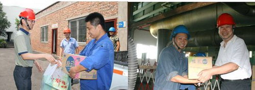 進(jìn)入7月以來,瀘州地區(qū)連晴高溫,熱浪襲人。川投集團(tuán)、川南發(fā)電公司十分牽掛戰(zhàn)斗在高溫酷暑中的一線干部職工。集團(tuán)公司專門下?lián)芰?#8220;送清涼”慰問金,委托川南發(fā)電公司代購防暑用品發(fā)給一線職工;川南發(fā)電公司也特地為生產(chǎn)一線職工購買了脈動、冰糕等清涼消署飲品。5日下午3時,公司總經(jīng)理李勝章、黨委書記唐得旗、工會主席黃松先后來到集控室、6.9m汽機(jī)頂軸油泵、#1爐給煤機(jī)以及煤場采制樣班組等工作現(xiàn)場,將防暑品送到奮戰(zhàn)在一線的職工手上,并一一問候“辛苦了!”,叮囑大家搞好防暑降溫工作,保證安全生產(chǎn)。