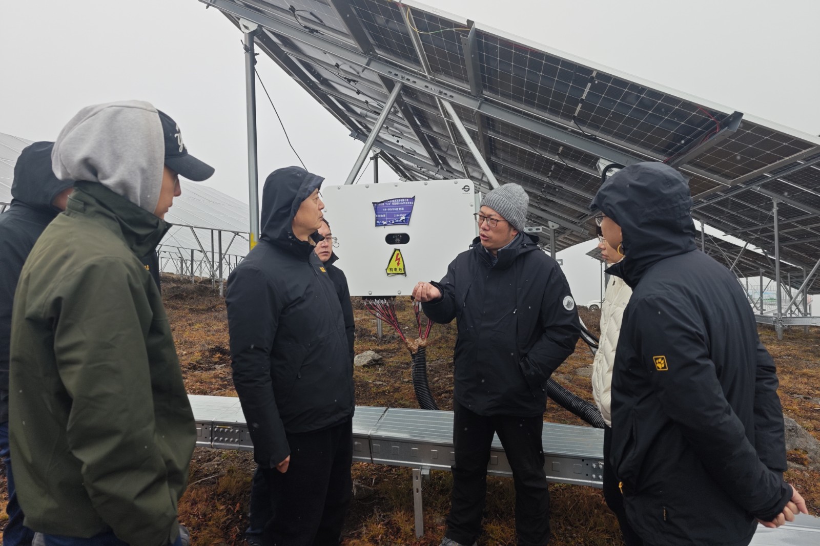 在海拔4400米的雅江紅星光伏電站,學(xué)習(xí)組來到已投運(yùn)的500MW光伏+50MW配套倉儲(chǔ)電站現(xiàn)場,參觀光伏發(fā)電設(shè)備及匯流、逆變、升壓設(shè)施,詳細(xì)了解光伏電站的建設(shè)投資、設(shè)備配置及巡檢、故障處理等專業(yè)知識(shí)。在紅星光伏發(fā)電控制中心,工作人員介紹了光伏發(fā)電流程、入網(wǎng)技術(shù)及設(shè)備的抗壓性能,負(fù)荷預(yù)測、控制和配套50MW直流倉儲(chǔ)調(diào)節(jié)方式等運(yùn)維管理內(nèi)容。
