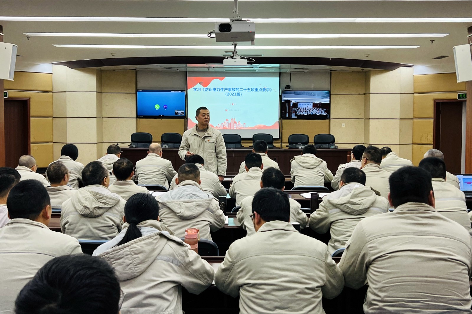 為有效提升員工應(yīng)急處置能力,提高公司電力安全生產(chǎn)管理水平,12月7日,川投田灣河公司組織召開專題培訓(xùn)會,圍繞《防止電力生產(chǎn)事故的二十五項重點要求(2023版)》(以下簡稱“二十五項重點要求”)和公司應(yīng)急預(yù)案、應(yīng)急知識進行學(xué)習(xí)培訓(xùn)。會議由公司黨委副書記、總經(jīng)理、安環(huán)職委會主任楊超龍主持,生產(chǎn)部門全體員工參加培訓(xùn)。