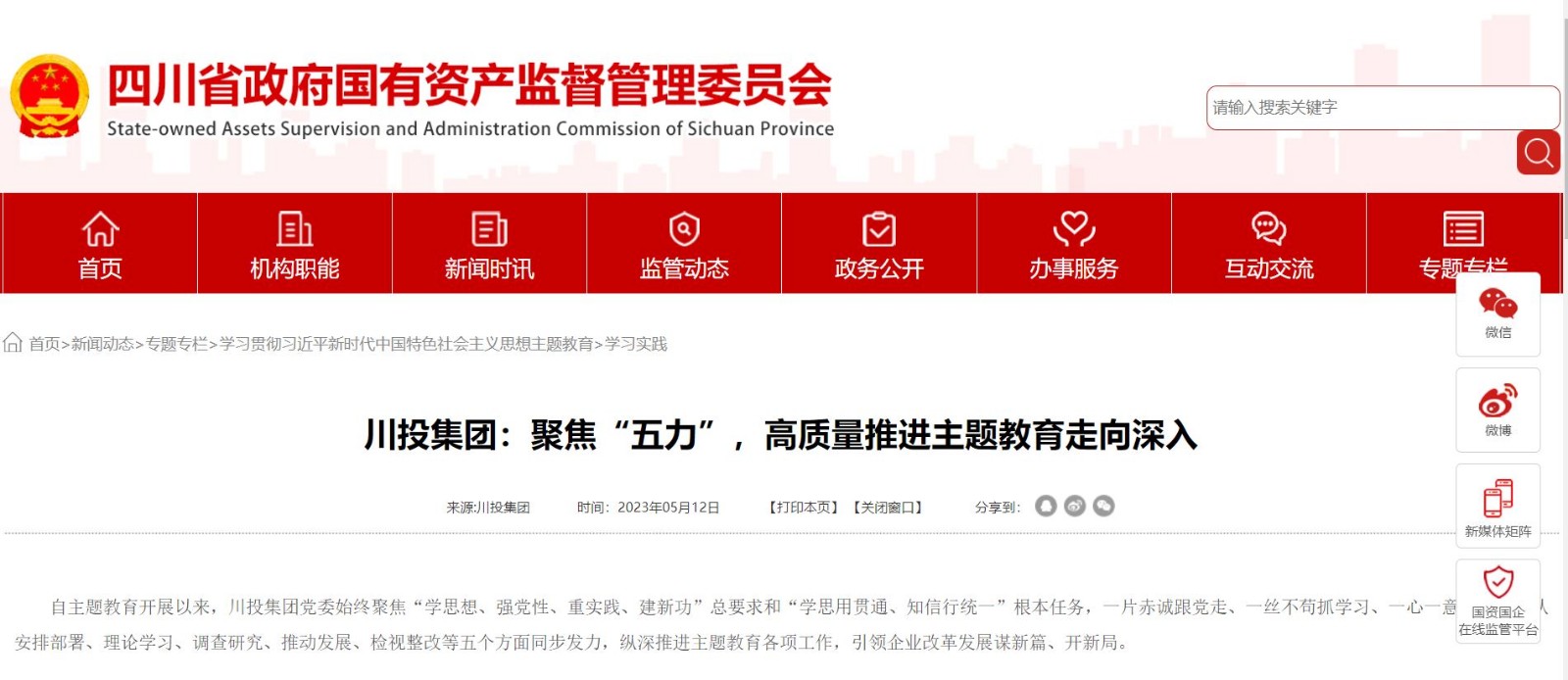 在中央、省委對(duì)主題教育作出安排部署后,川投集團(tuán)黨委迅速行動(dòng),做到“五個(gè)第一”(即:第一時(shí)間開展理論學(xué)習(xí);第一時(shí)間成立組織機(jī)構(gòu);第一時(shí)間召開工作會(huì)議;第一時(shí)間制發(fā)工作方案;第一時(shí)間啟動(dòng)調(diào)查研究)。同時(shí),在完成上級(jí)“規(guī)定動(dòng)作”的基礎(chǔ)上,集團(tuán)黨委還安排了“3553”的“自選動(dòng)作”,在明確3大類17種學(xué)習(xí)材料的基礎(chǔ)上,增加了3項(xiàng)特色學(xué)習(xí)活動(dòng);擬定了聚焦堅(jiān)持黨的領(lǐng)導(dǎo)、完善現(xiàn)代企業(yè)制度、調(diào)整優(yōu)化產(chǎn)業(yè)結(jié)構(gòu)、提升管理效能、防范化解風(fēng)險(xiǎn)等5個(gè)方面的調(diào)研課題;提出了開展黨建提升行動(dòng)、發(fā)展攻堅(jiān)行動(dòng)、科技創(chuàng)新行動(dòng)、效益提升行動(dòng)、專業(yè)整合行動(dòng)等推動(dòng)發(fā)展“五大行動(dòng)”;謀劃了包括增加了聚焦整治工作作風(fēng)不實(shí)專項(xiàng)整治在內(nèi)的3個(gè)專項(xiàng)整治。